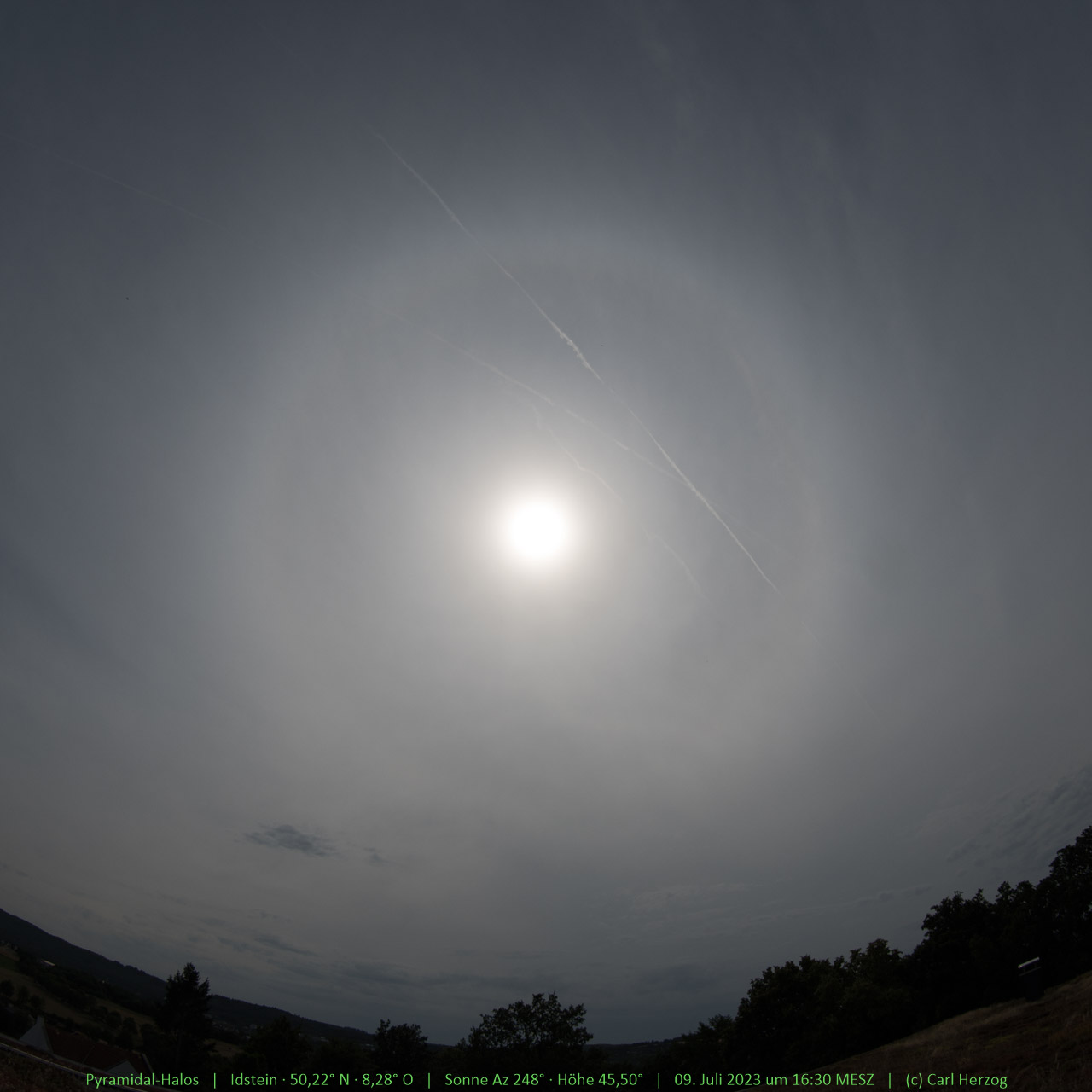 Visuelle Wahrnehmung: sehr diffuser 22° Ring, 9° Ring nur mit etwas Phantasie zu erahnen