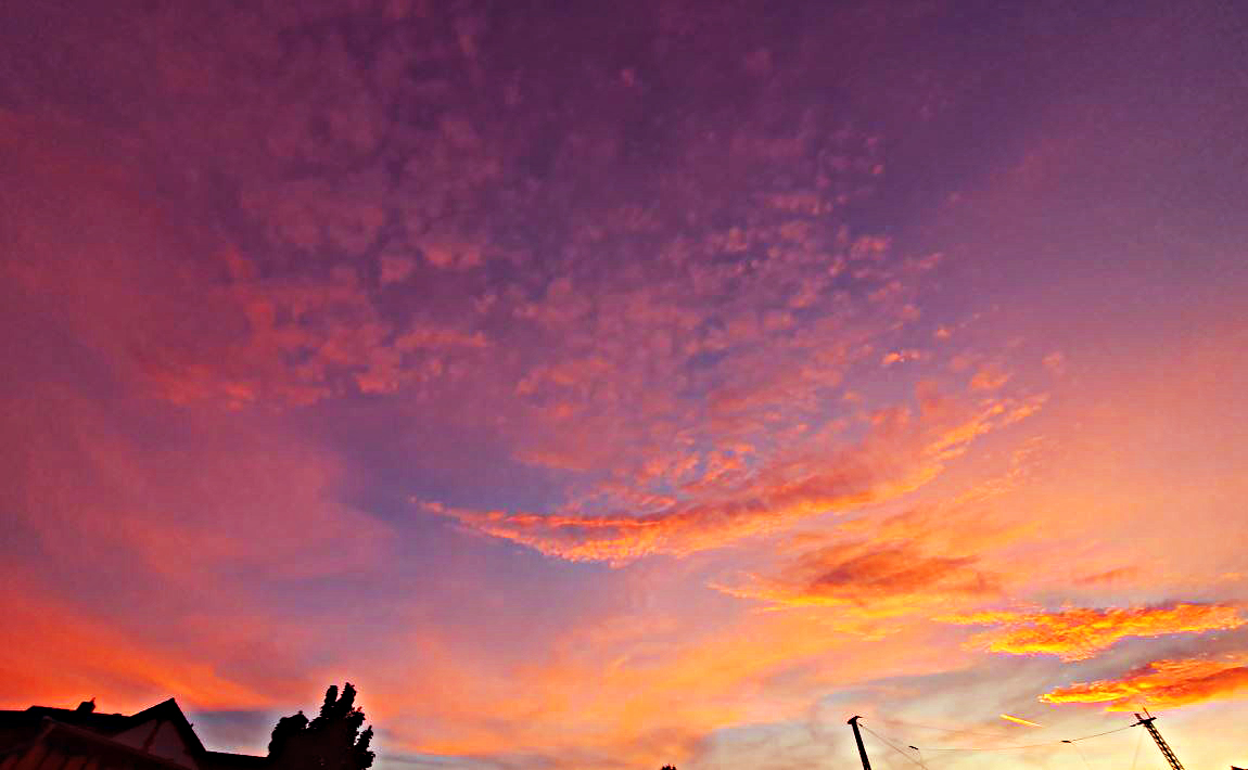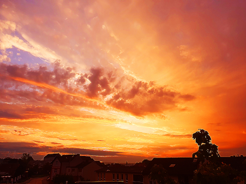 Intensives Abendrot heute Abend in Kirchhain, teilweise so intensiv, sodass die Handykamera nicht gut damit klar kommt: