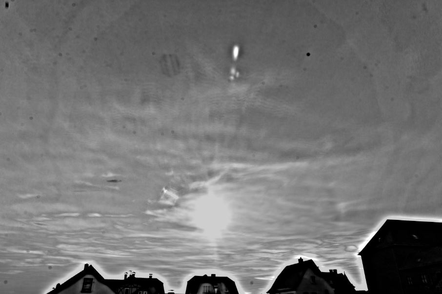 Später gegen 17:32 erschien dann eine rechte Nebensonne bei einem Sonnenstand von 15°: In der USM-Variante (ebenfalls ein Stack aus 20 Bildern) werden wohl auch die Lichtsäulen, sowie ein HZK-Fragment (sehr langer Schweif an der rechten Nebensonne) sichtbar: Und nochmal mit RB-Methode: Da sehe ich womöglich an der rechten Nebensonne die beiden seitlichen Lowitzbögen oder ist es doch nur ein 22°-Ring-Fragment? Zumindest spannend.
