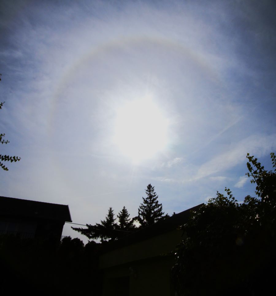 ein gut getarntes Halo zeigt sich heute Morgen über dem Wiener Becken. Gestern zog eine äußerst abgeschwächte Kaltfront durch und die Nacht brachte die ersten kühlen Temperaturen unter 10 Grad, ganze 6 habe ich als Tmin gemessen.
