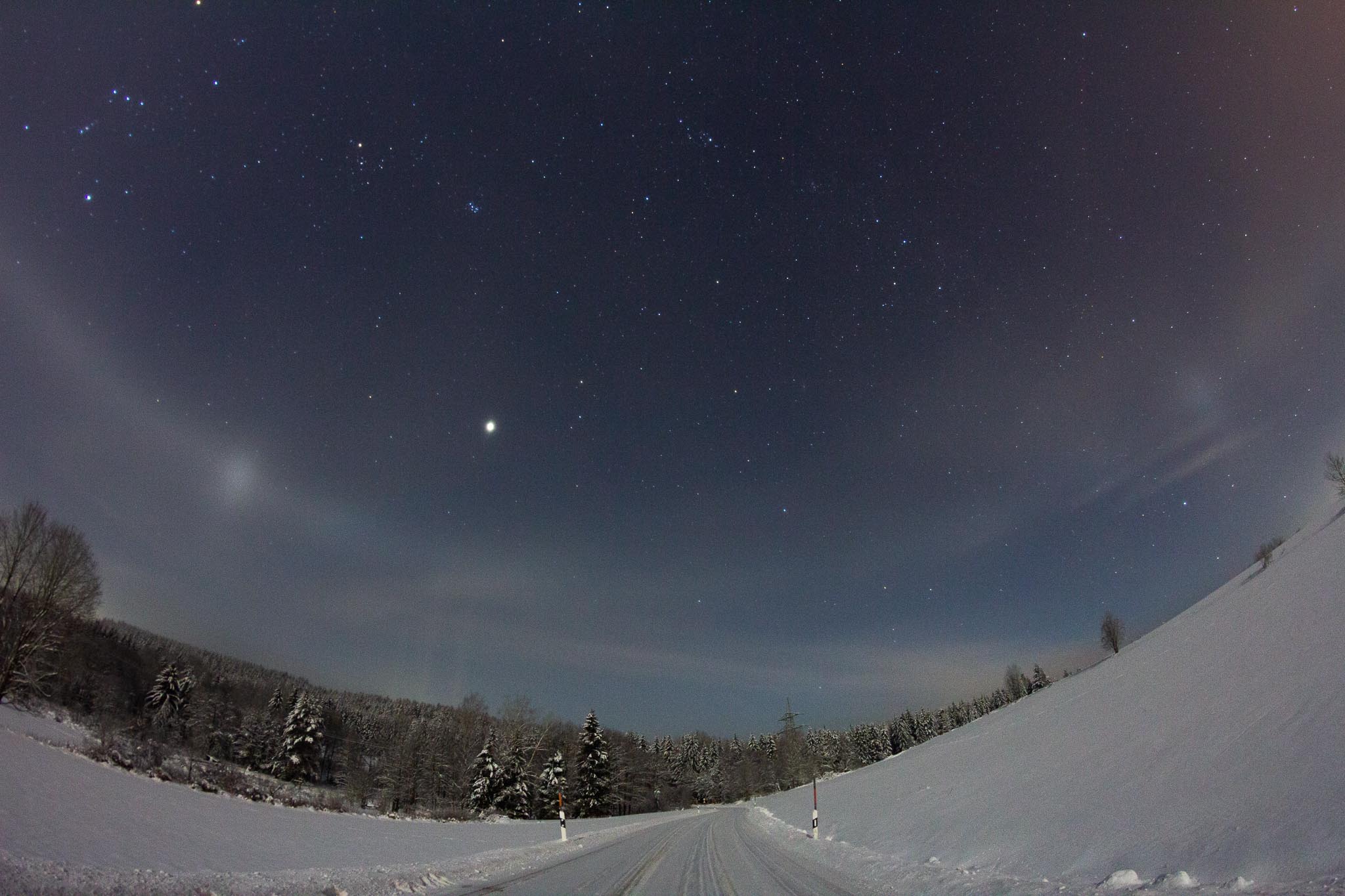 Mir gefällt u.a. auch der homogene Nebensonnenkreis mit den Wintersternen und Lampenlichtsäulen (bräuchtest nur noch ein Vollkreis-Fisheye).
