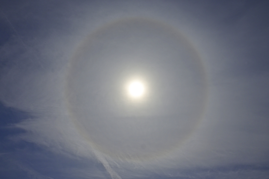 Gestern gegen 14:30 Uhr konnte ich diesen hellen Halo über der Insel beobachten.