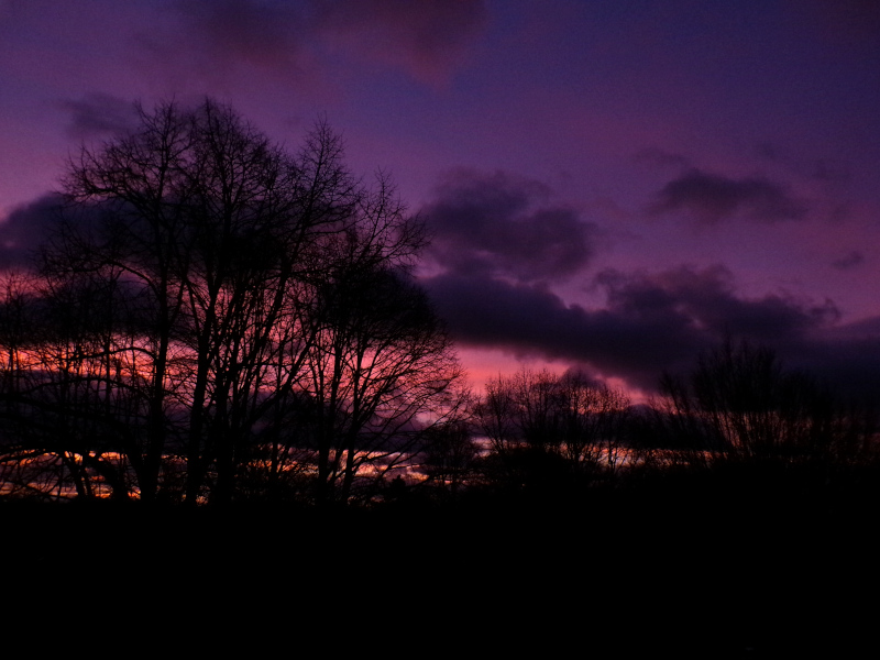 Seit gestern Morgen gab es Purpurlicht, welches ich sowohl gestern, als auch heute Morgen, sowie auch heute Abend beobachten konnte. Gestern Abend war es bedeckt.