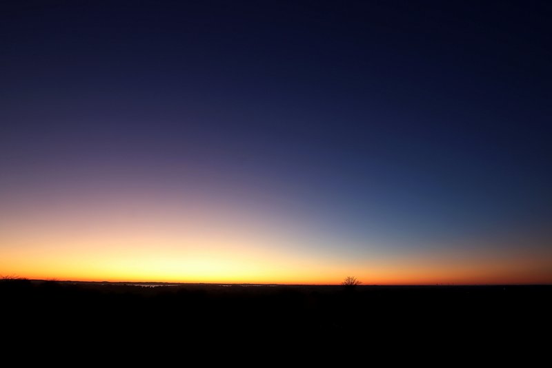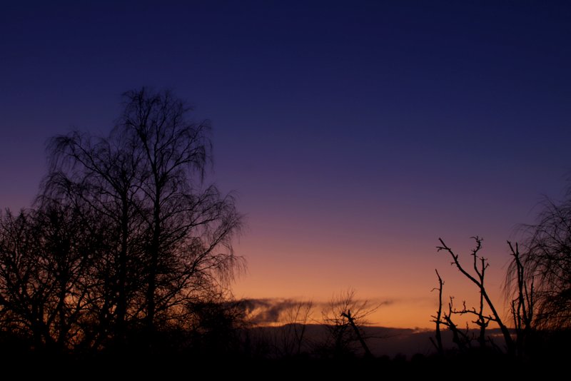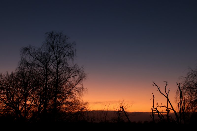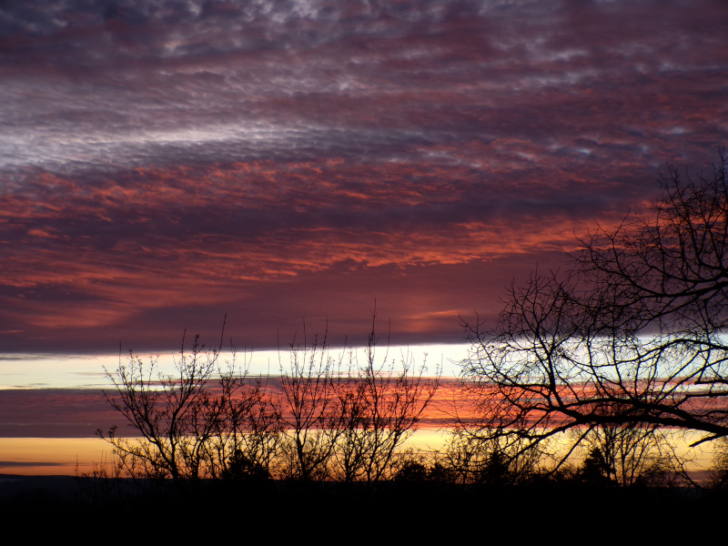 Wieder ein wenig Morgenrot von heute, 14. Januar. Ein kleines Stück Lichtsäule ist mit "eingearbeitet":
