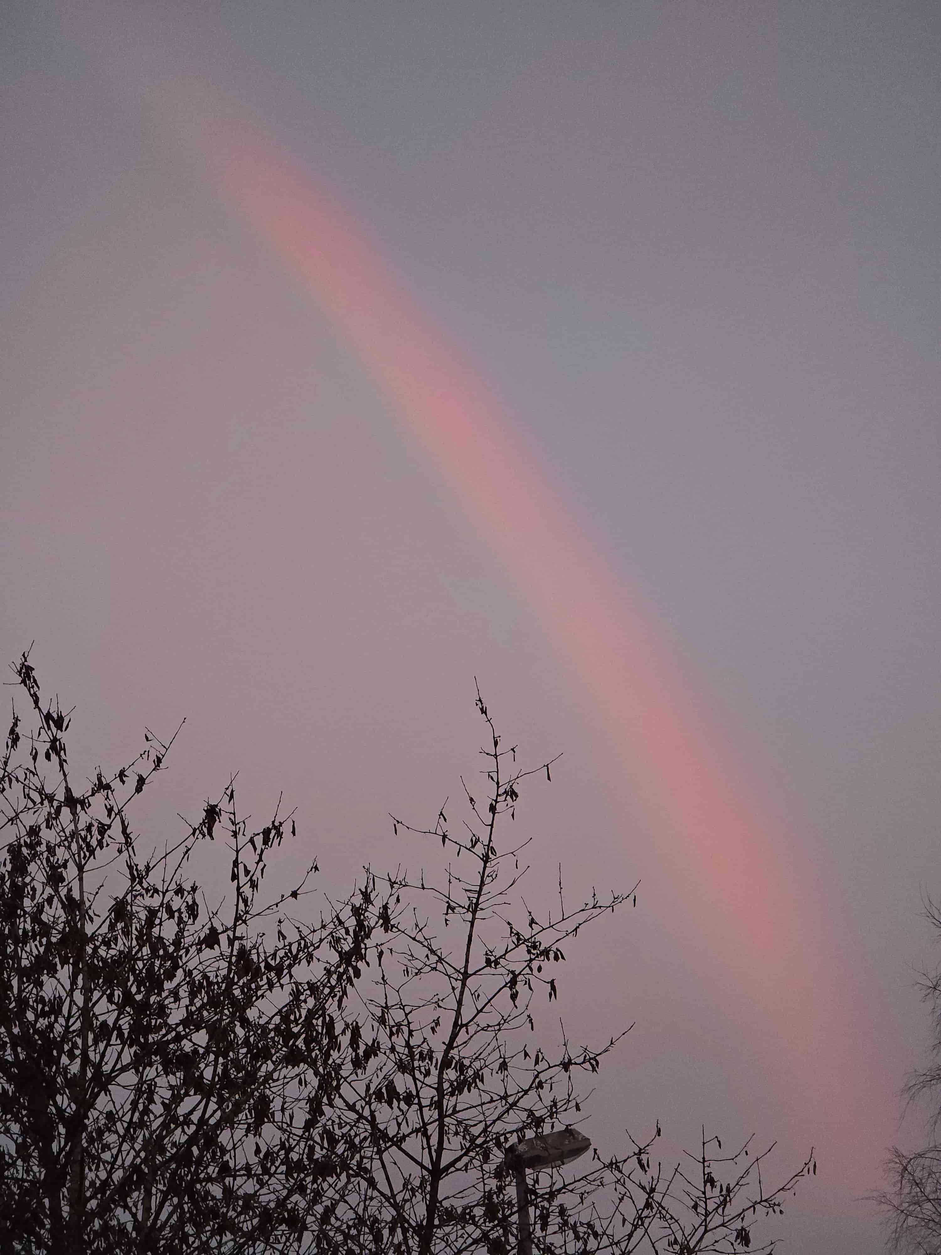 Ich habe vorgestern am 14.01.25 um 17 Uhr MEZ in 98527 Suhl/Thüringen einen wunderschönen roten Regenbogen gesehen, der sogar noch gespalten war. Es hat wohlgemerkt nicht geregnet. Ich hoffe man sieht es in den sehr komprimierten Bildern. Diese wurden mit dem Samsung S24 ultra aufgenommen. Es war direkt vor der Haustür meiner Firma. Das habe ich vorher auch noch nie bewusst so wahrgenommen und ich war sehr überrascht, da es wie gesagt, nicht geregnet hat und die Sonne schon untergegangen war und es ein herrliches Abendglühen gegeben hat.