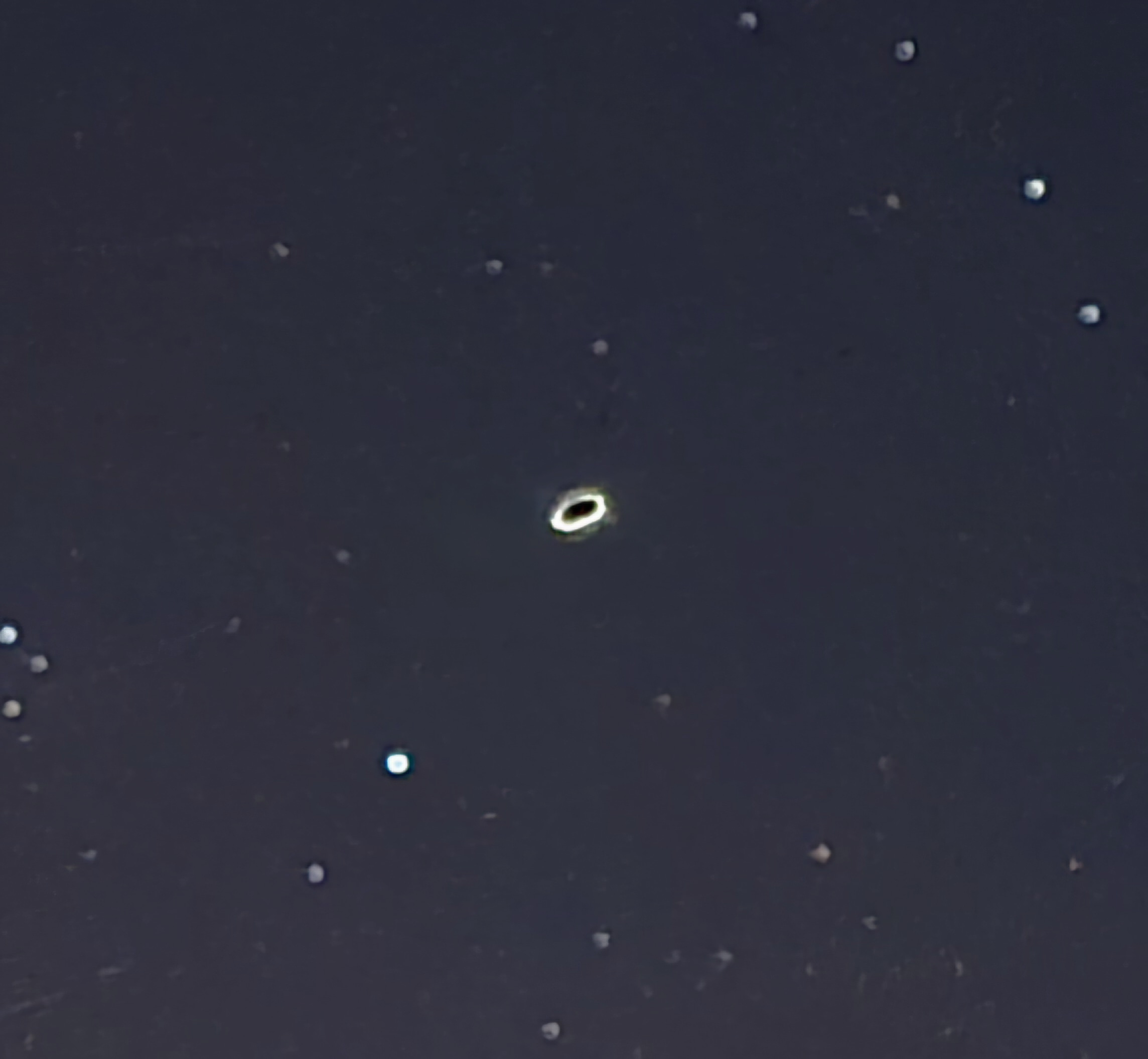 Hier nochmal 3 Fotos, die mit einer Belichtungszeit von jeweils. 8s hintereinander gemacht wurden. Man kann dann hier vielleicht die Bewegung des Objektes sehen. Danach verschwand das Objekt plötzlich wieder. Es ist schade, dass man es nicht so gut hier erkennt durch die hohe Komprimierung. Das ist wirklich ein scharfkantiger Ring.