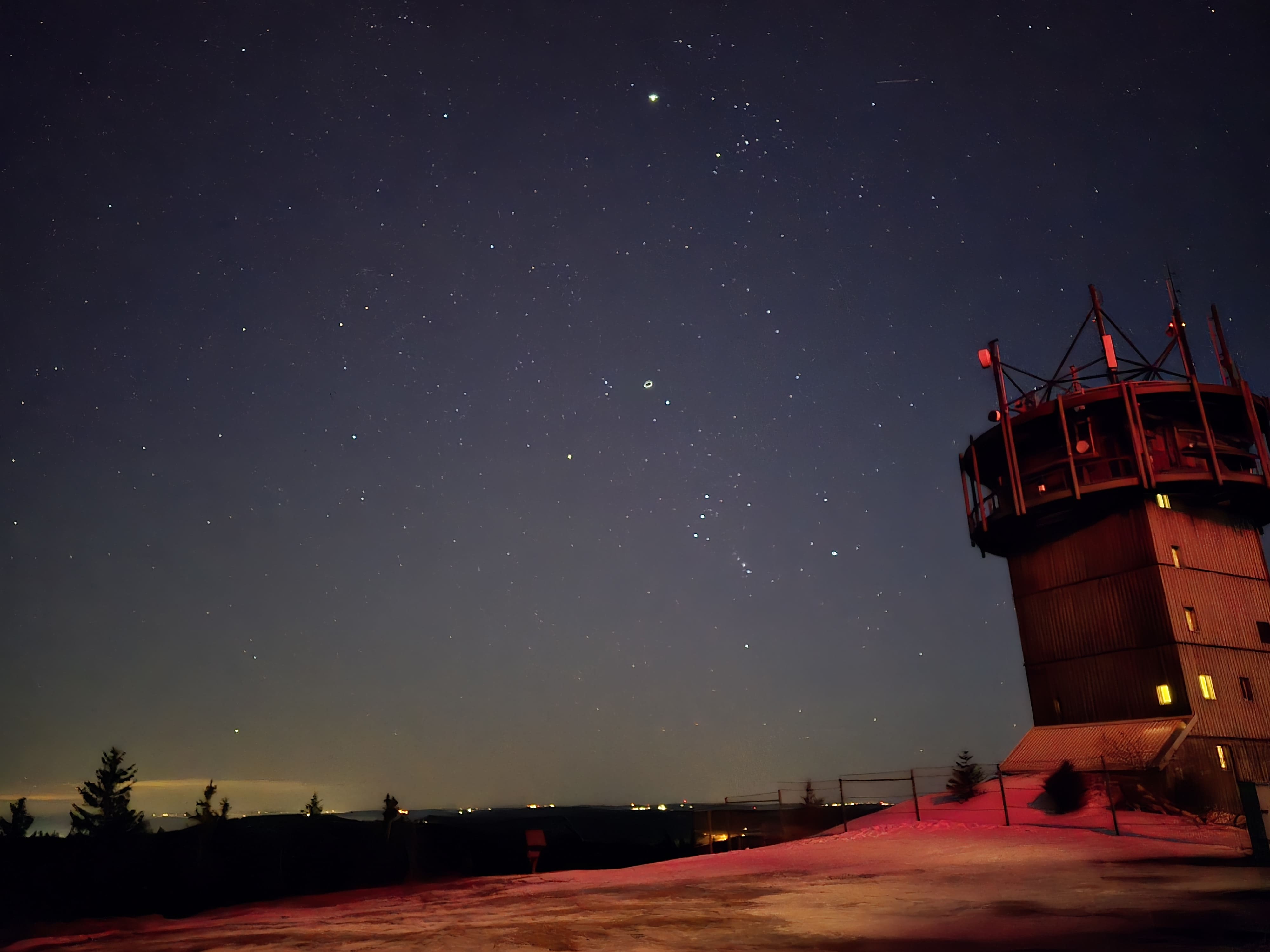 Gestern abend so gegen 18.00 MEZ hatten wir ein superschönes Purpurlicht beim Sonnenuntergang auf dem Schneekopf, Nähe 98527 Suhl/Thüringen. Der Berg ist ca. 1000 mÜNN. Unten im Tal war alles Suppe und oben war ein wunderschöner Sonnenuntergang und Sternenhimmel. Wir (mein Mann und ich) waren ganz allein auf dem Berg, nur noch ein anderer Mann und der hat da oben Saxophon gespielt. Das war einfach nur magisch. Aufgenommen ist das ganze mit dem Samsung S24 Ultra. Wir haben auch noch mit der Sony Alpha 7 III Bilder aufgenommen. Die muss ich aber erst noch sichten und die sind auch sehr groß. Da geht bei der Komprimierung viel verloren.