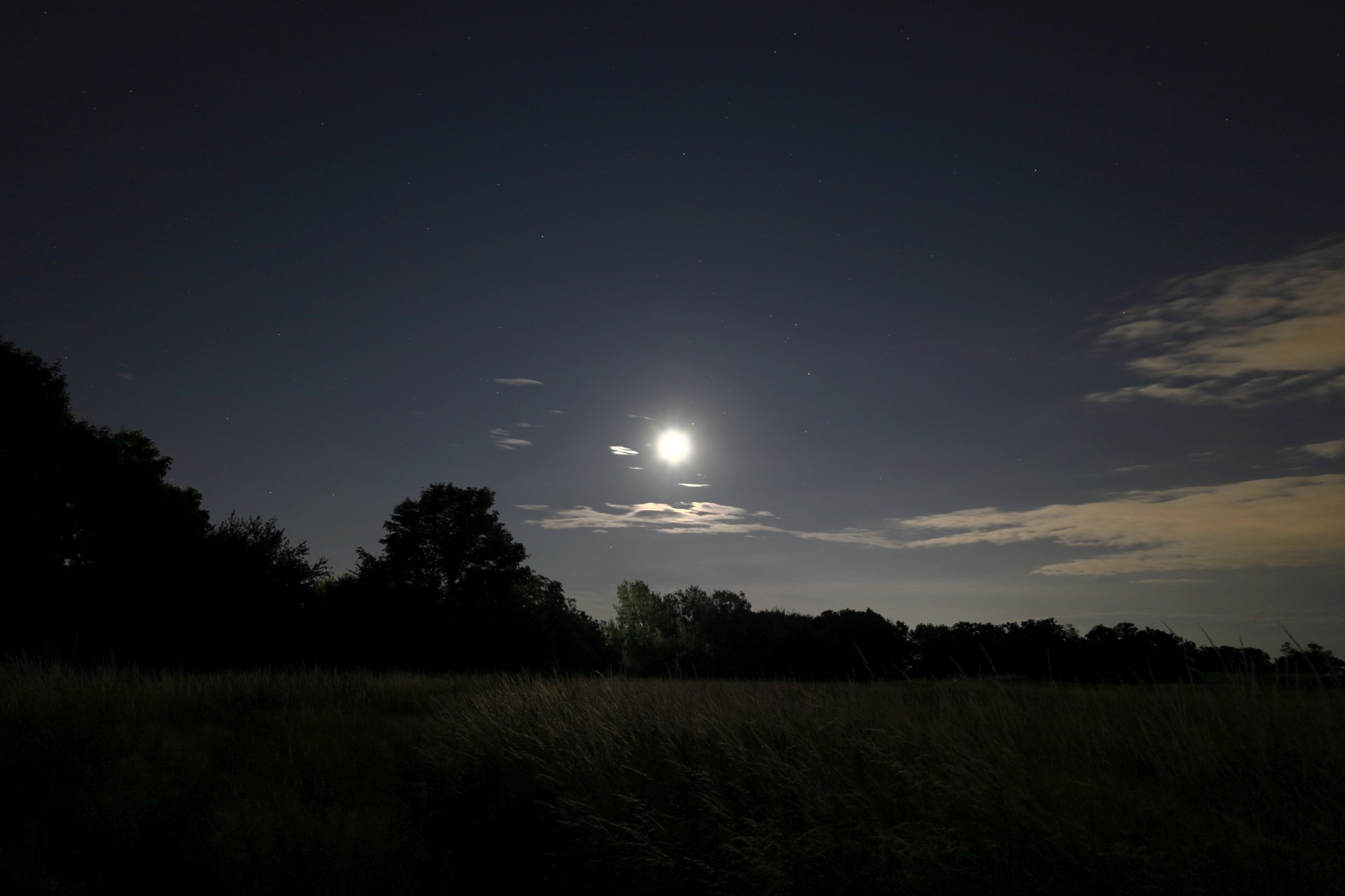 Die Bedeckung des hellen Sterns tau Scorpii (2,8mag) stand kurz bevor. Der Stern verschwand fast im hellen Mondschein und war nicht mit freiem Auge erkennbar. Die Wolken neben dem Mond zeigten deutliches Irisieren. Canon RP, Brennweite 105mm