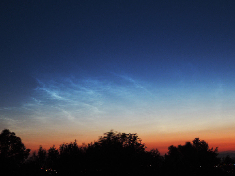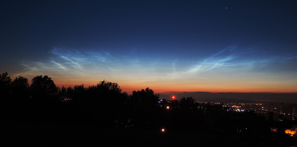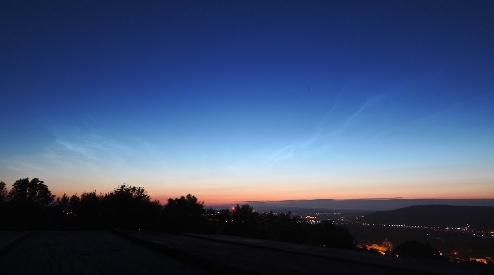 das passt perfekt zu den Beobachtungen weiter östlich und nördlich (Berlin, Dresden, Kiel) und zu einer Lage des Feldes über dem westlichen Polen. Das andere, im Odenwald dokumentierte NLC-Feld konntest Du nicht sehen, weil es südlich von Dir stand.