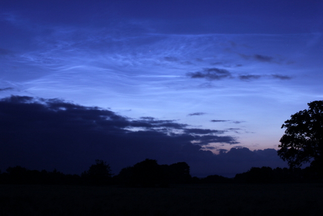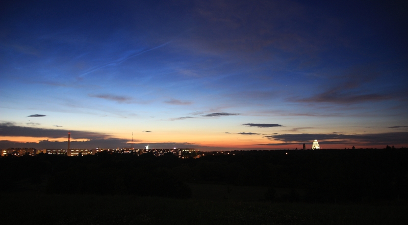 Glückwunsch zu den wirklich eindrucksvollen Aufnahmen auch von mir. An meinem Aufnahmestandort waren die NLC-Dosen allerdings eher homöopathischer Natur, wobei ich die Sichtung aufgrund von Müdigkeit dann auch vorzeitig gegen Mitternacht abgebrochen hatte. Gut, Licht- und Luftverschmutzung sind hier halt stadtnah auch enorm. Zudem war die Luftfeuchtigkeit gestern relativ hoch. Daher auch nur ein Beweisfoto, entstanden gegen 23:05 Uhr MESZ. Azimut kann ich noch nicht einschätzen, da Standort noch relativ neu für mich. Bekomme ich aber noch raus. Mal Google Earth bemühen. Bei der Einschätzung der Höhe bin ich überfordert.'Würde aber auf mehr als 10° tippen. Sternbilder hatte ich leider nicht zur Hilfe. Gelobe Besserung. Gestern ging doch so einiges schief. Meine Joby-Fahrradsattel-Kombi war mit dem Gewicht ganz offensichtlich überfordert. Aber gut, die Erfahrung war es wert :D . Heute werde ich mal das Stativ mitschleppen, wenn das Wetter mitspielt...
