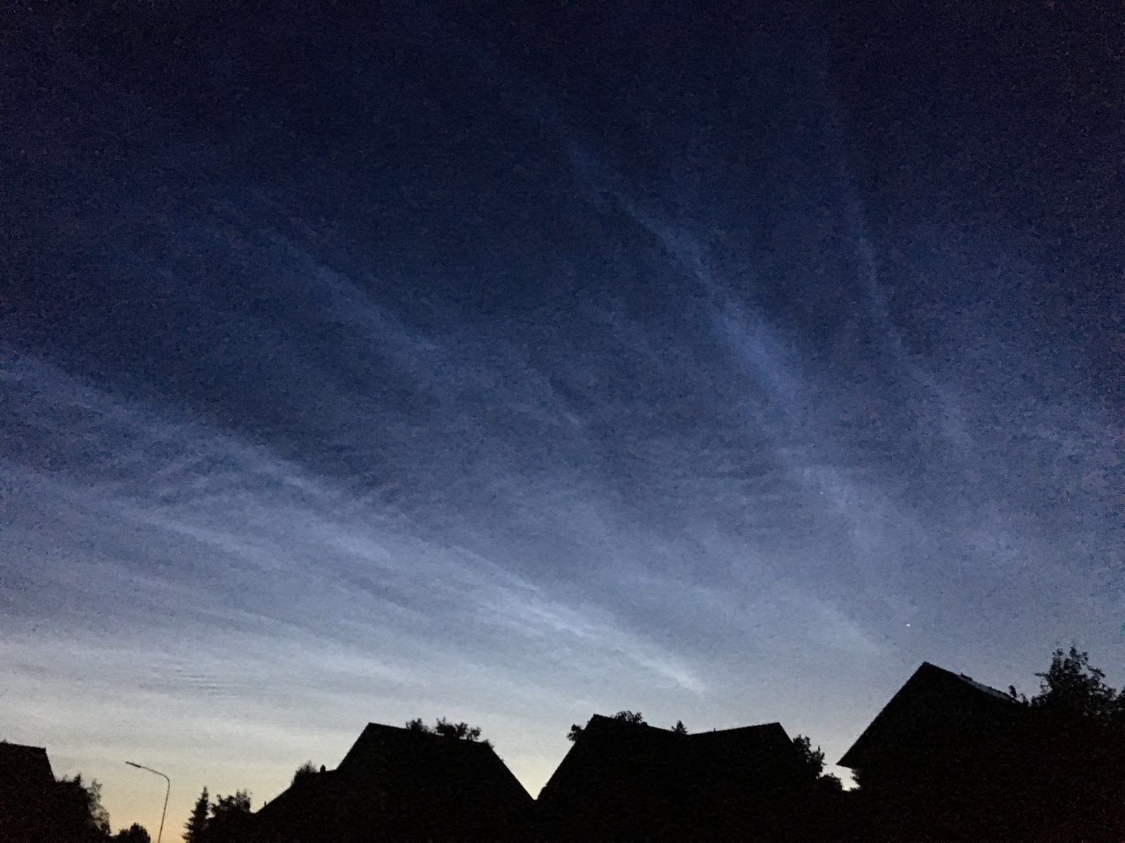 Die NLC hatten locker Helligkeit 4-5. Sie bedeckten den gesamten Nordhimmel bis über den Zenit hinaus.