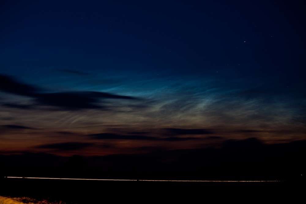 überprüf noch mal Deine 40° Höhe. Ich war ja auf dem Landberg, maximal 15° konnte ich bestimmen, bis die NLCs verschwanden. Kommt mir bissl viel vor…