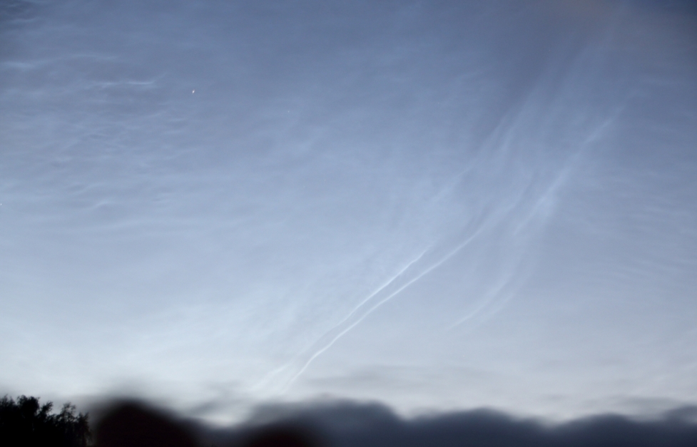 Bin gegen 21:30 UTC 'rausgefahren und war mir nicht sicher, ob das was ich schon sehen konnte schon NLC's sein konnten - oder nur hohe Cirren. Die Antwort hatte Laura schon geliefert...