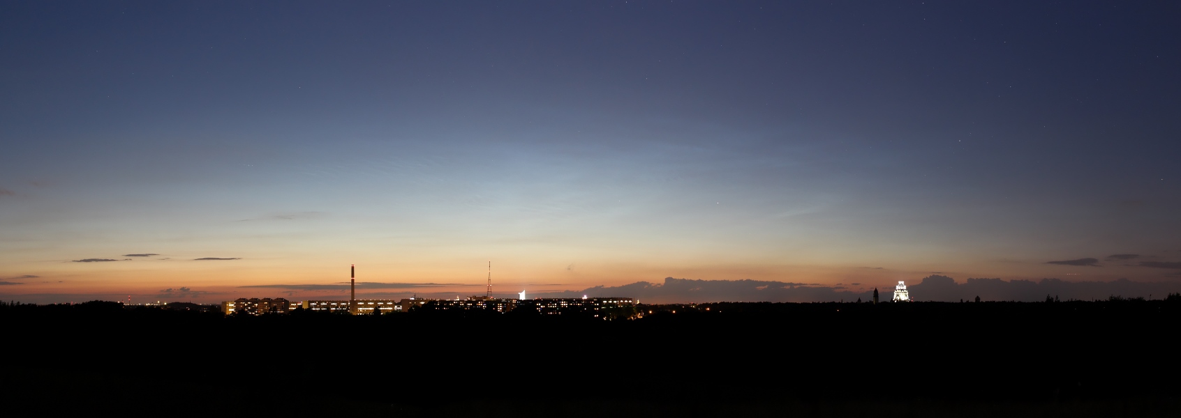 Kurz nach 23 Uhr konnte ich mit bloßem Auge etwas NLC-artiges hoch am Himmel über tropophärischen Wolken erkennen und die Kamera bestätigte mich.