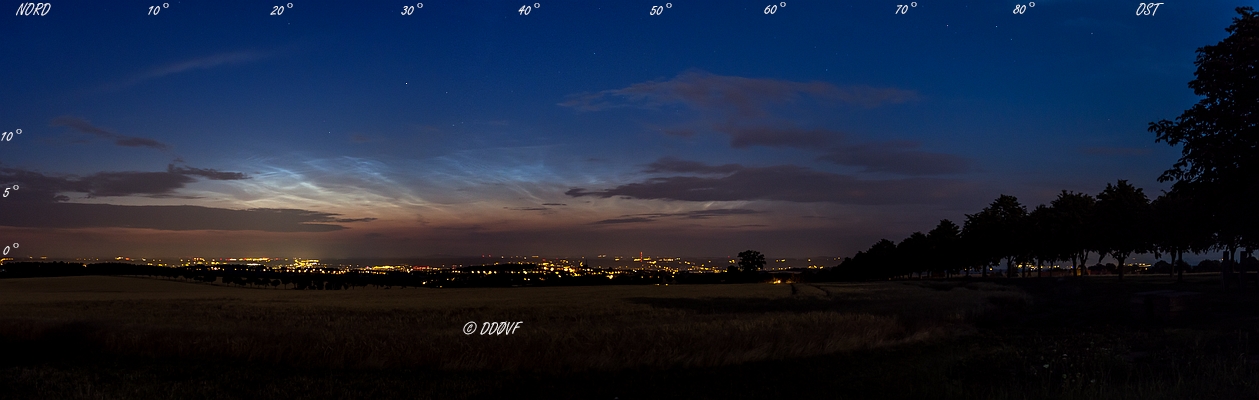 Am Ende standen die NLC in südöstlicher Richtung, aber auch im NW war noch längere Zeit etwas zu sehen, die größte Helligkeit würde ich als satte 3 einschätzen.