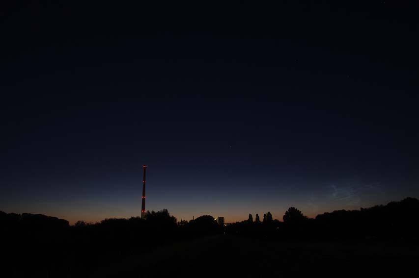 NLCs waren hier in Bonn von Ankunft am Beobachtungsplatz um 03:15 MESZ für eine Stunde (bis 04:15 MESZ) visuell beobachtbar, danach ging es noch fotografisch. Um 04:20 MESZ habe ich abgebrochen.
