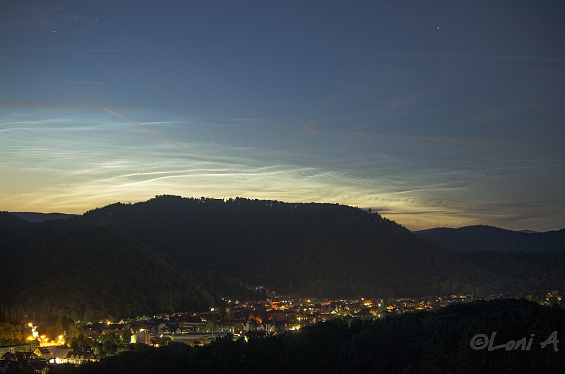 Beobachtungszeit: Beginn um 22:57 Uhr MESZ, die letzten Ausläufer der NLCs waren bis ca. 0:30/0:45 Uhr MESZ zu erkennen (fotografisch