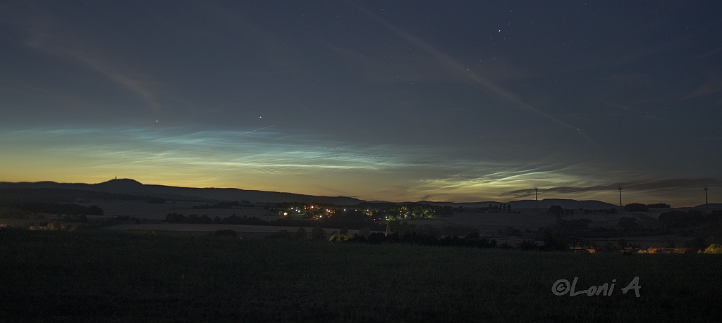 Auch in Meuselwitz waren die NLC´s natürlich sichtbar. Das helle Hauptfeld war Richtung Norden (Azimut 330° bis 20°) zu sehen und hatte eine Helligkeit von 3 - 4. Die Höhe würde ich mit mindestens 15° einschätzen.