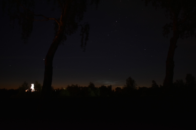 Etwas später, ein erstes Bild mit 200mm Brennweite um 23:59 MESZ, zu Beginn der nautischen Dämmerung: