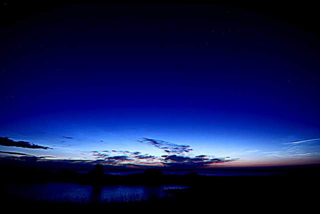 Mein Ziel war es, über mit Zeitraffer die Dynamik der NLC's zu erfassen. Pech gehabt: Das "erste" Feld ab 0:00 MESZ war nahezu ortsstabil und ohne Dynamik, so meine Beobachtung. Das einzige was sich bewegt sind die Schiffe auf der Ostsee und die vorbeiziehenden niedrigen Wolken. Das sich an ca. 1:30 etablierende östliche Feld zeigte die von mir erhoffte Dynamik. Leider war mein Akku -bzw. der der Kamera