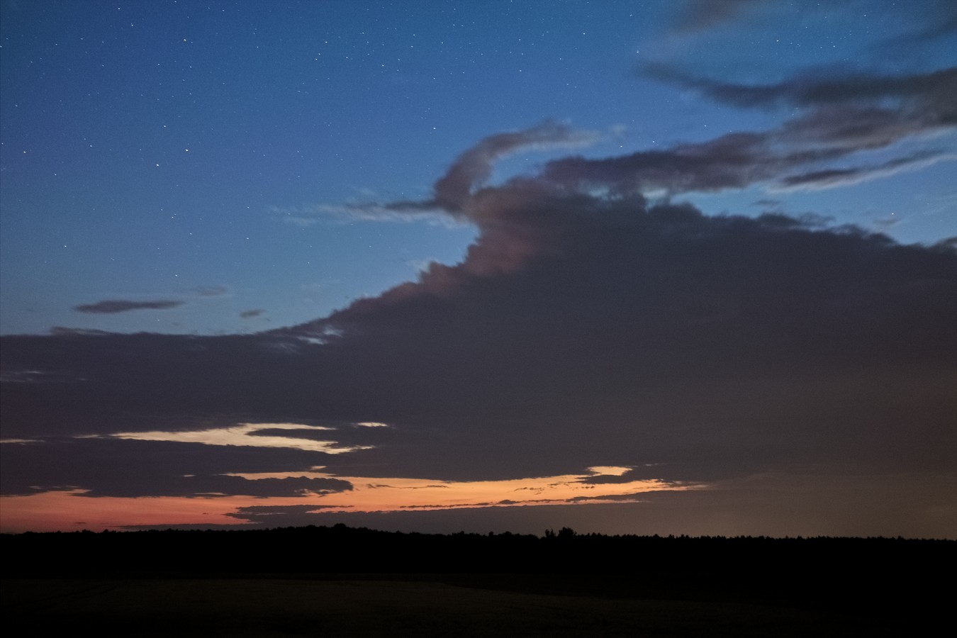 nachdem ich gestern die NLC-Bilder der Nacht und die von den durchziehenden Gewitterwolken ausgelesen, grob durchgeschaut und einzelne bearbeitet hatte, erblickte ich beim Zubettgehen quasi schon wieder silbrig blaue Schleier über dem abziehenden dunklen Gewölk.