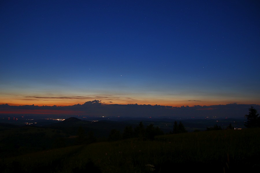Also hier um 21.20 UTC ein Hauch NLC im Norden (Azimut 10°, Höhe: 3°, H=fotografisch bis 1), der Rest, wie Olaf schon richtig sagt, undefinierbarer Schmodder. Vielleicht auch mit mondbeleuchteten Cirren garniert. Hier zwei Bilder und dann gehts ins Bett.