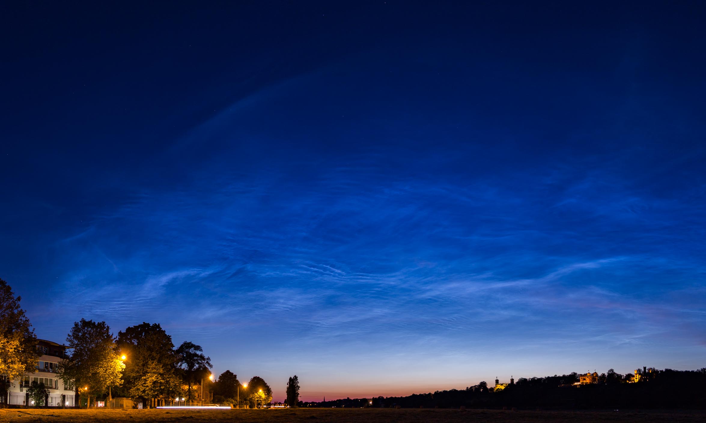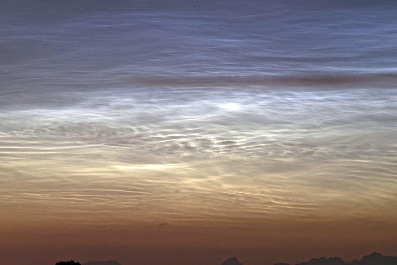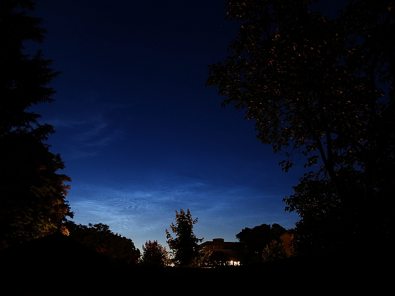 Hier noch ein Bild des südlichsten NLC-Feldes, welches ich je zu Gesicht bekommen habe. Die tiefsten Bereiche stehen ca 45° - 50° über dem Horizont, im Süden wohlgemerkt.