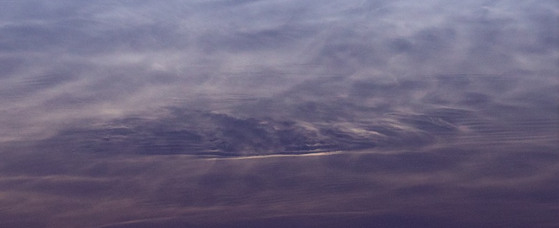 Als ich dann zufällig mal nach oben blickte, war ich einfach baff von dem phantastischen hohen Abendhimmel, der von einem ganz zarten wunderschönen leuchtenden Wolkengespinst überzogen war. So etwas habe ich noch nie gesehen. Ich habe versucht drei Aufnahmen mit auf dem Autodach aufgestützer Hand zu machen. Das Stativ lag bedauerlicher Weise zu Hause.