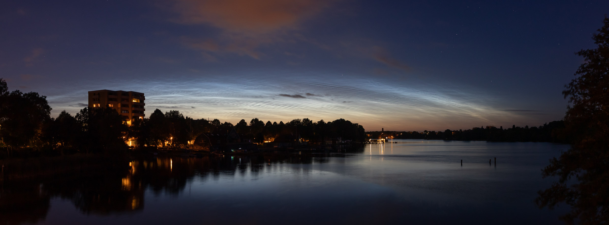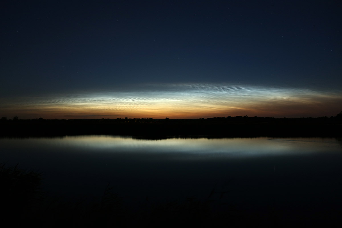 Ich habe ja noch einige Bilder aus dieser Nacht nachzutragen. Als erstes fuhr ich nach dem NLC Nachweis vom Balkon mal wieder an den Ryck, weil das einfach der am nächsten gelegene Ort ist, von dem aus man freie Sicht nach Norden hat und an dem man schöne Fotos von NLC machen kann. Leider war es dort in dieser Nacht von Donnerstag auf Freitag nicht ganz so schön leise und Menschenleer, wie ich es mir eigentlich gewünscht hätte, aber auch nicht so voll wie am Wochenende.