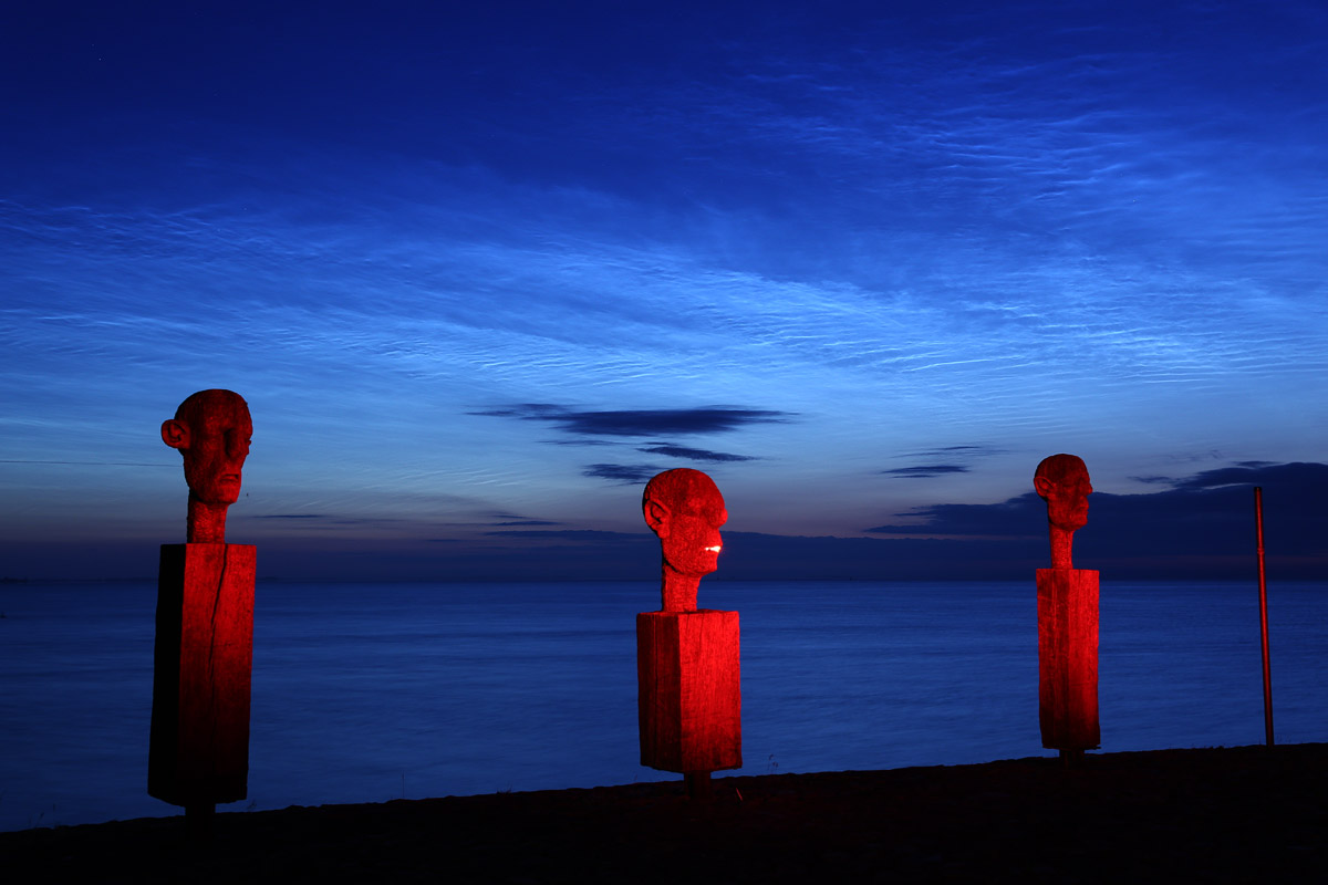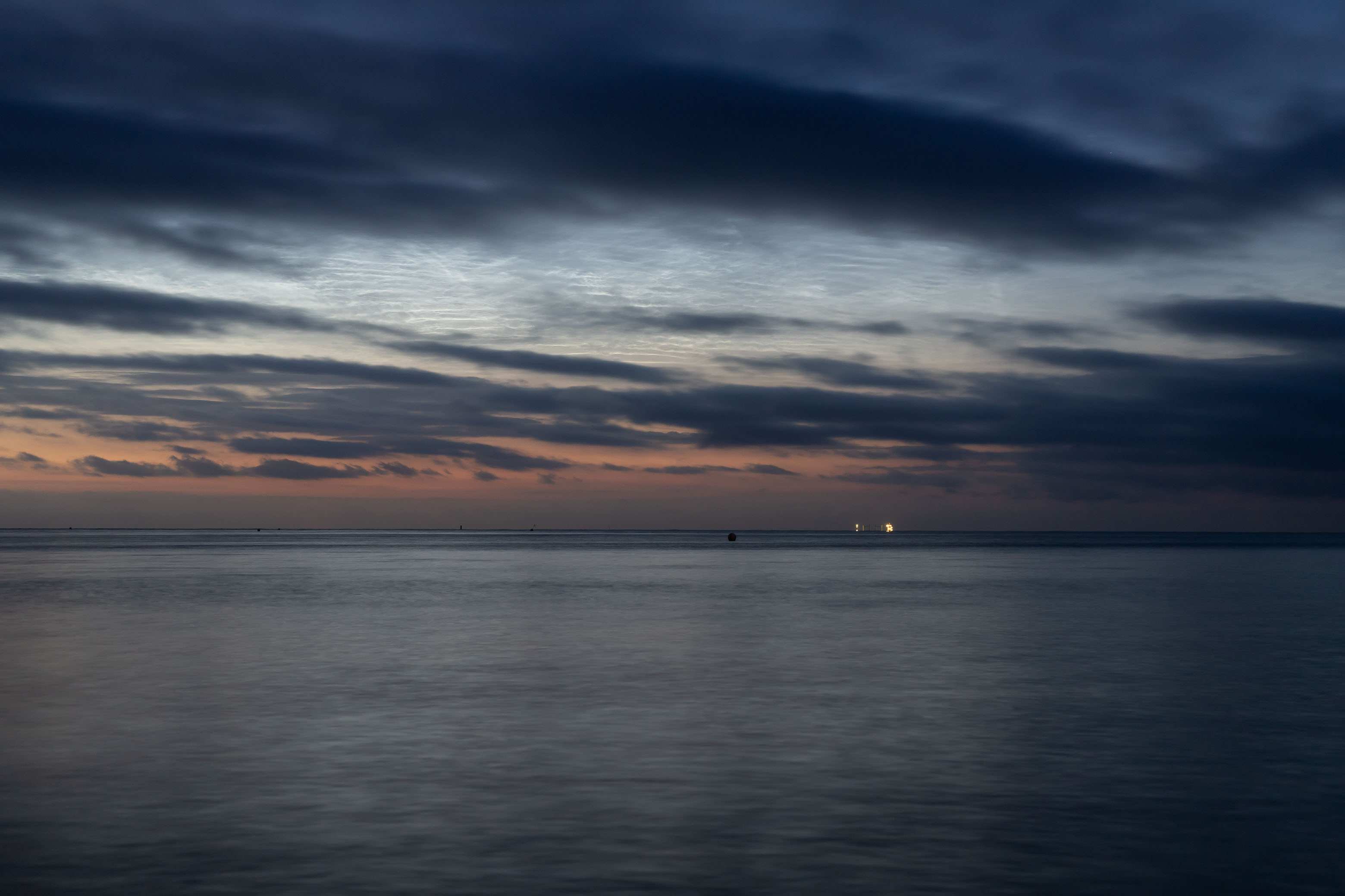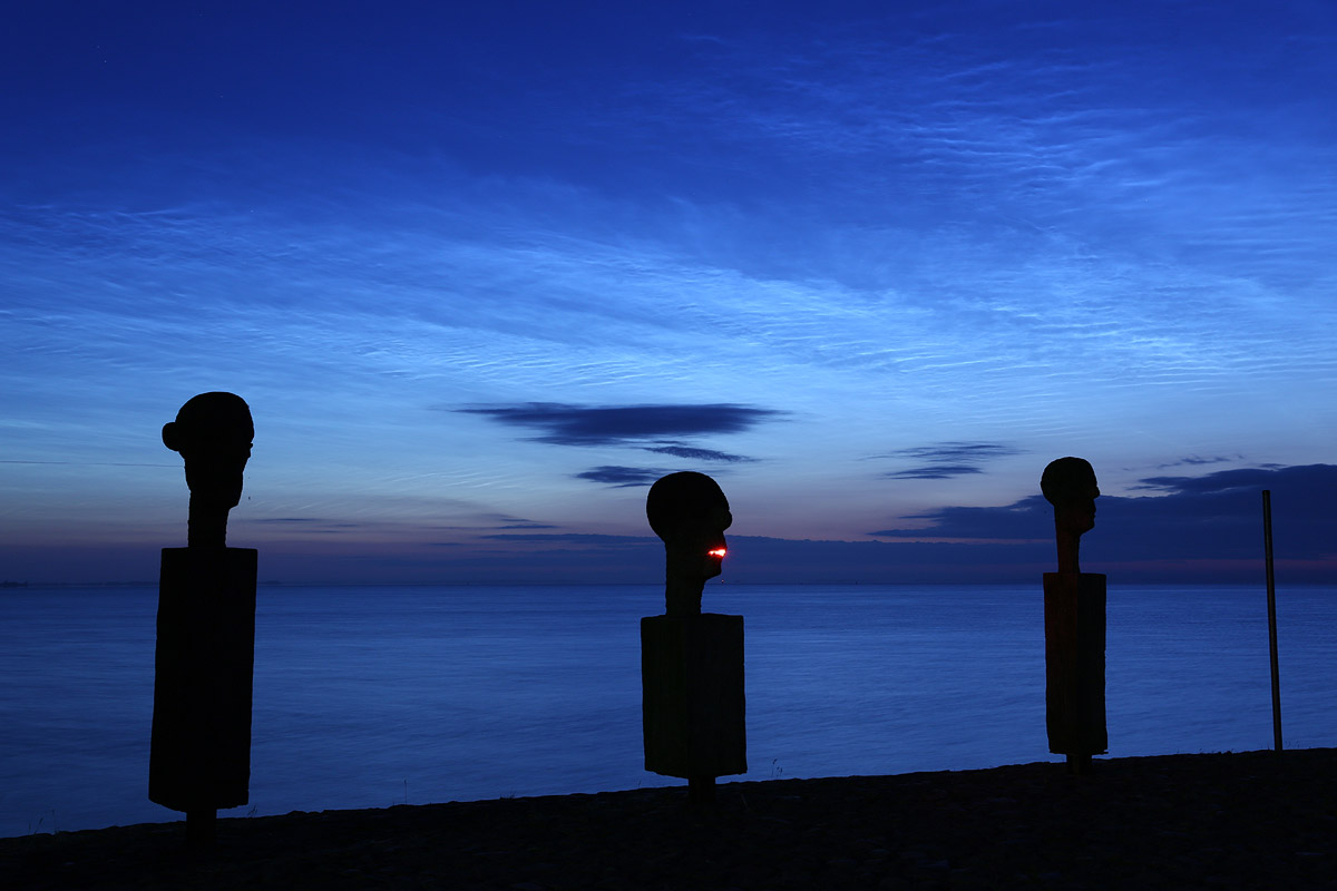 Dafür gab es aber auch wunderschöne helle leuchtende Nachtwolken, deren Helligkeit ich bei 3 bis 4 einordnen würde und angenehme Temperaturen und einen Wolken freien Blick bis zum Horizont. Nur der nervige Wind störte die fotografische Harmonie ein wenig, da er schöne Reflexionen im Wasser leider zu verhindern wusste.