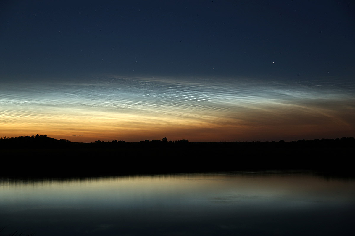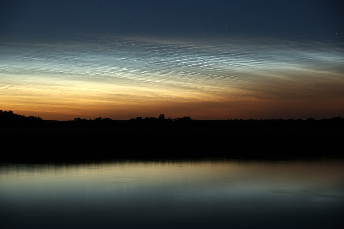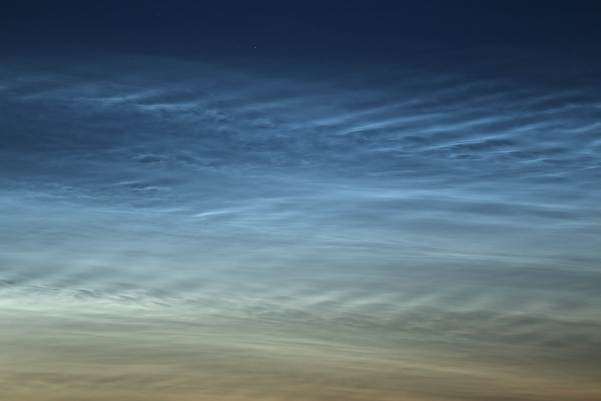 Die NLC zeigten seit meiner Ankunft am Ryck sehr schöne Strukturen, welche ich in mehreren Detailaufnahmen festgehalten habe. Es hat sich diesmal gelohnt, statt dem Superweitwinkel mal wieder das Teleobjektiv mit zu nehmen.
