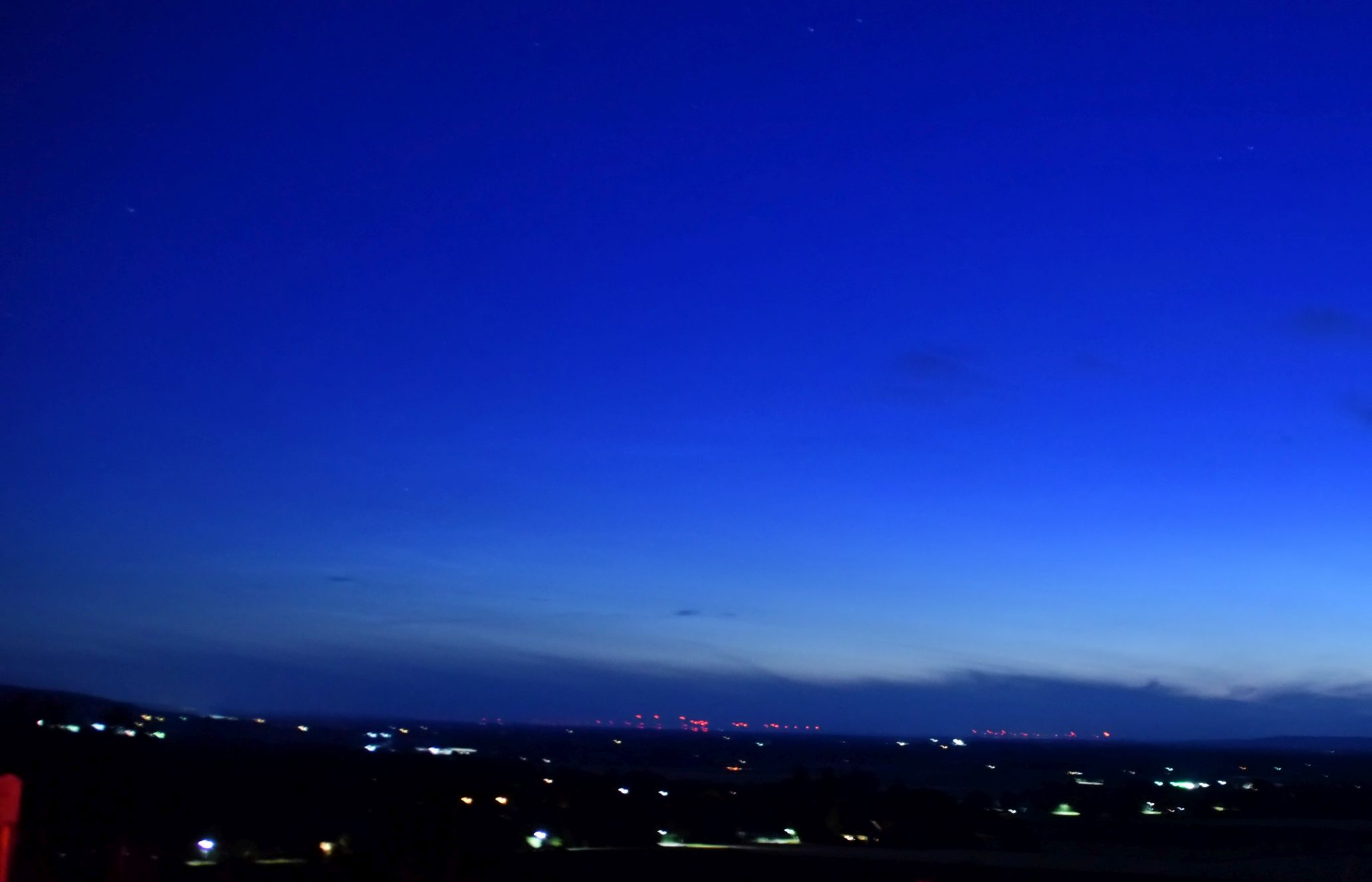Ich war mir ja nicht sicher, was ich da "auf die Platte" bekommen habe. In Lübbecke war die Sicht gut 30 km in die Norddeutsche Tiefebene. Gegen 23:30 Uhr habe ich, so glaube ich wenigstens NLC`s vor die Linse bekommen. Mein Standord Lübbecke, Höhe 131 Meter, N52°17`, O8°35`. Die Richtung war NNW bei 310°. Nikon d5500, f3,5, 2sek, ISO 1000, 13mm. Die roten Lichter der Windräder sind gut 25km entfernt.