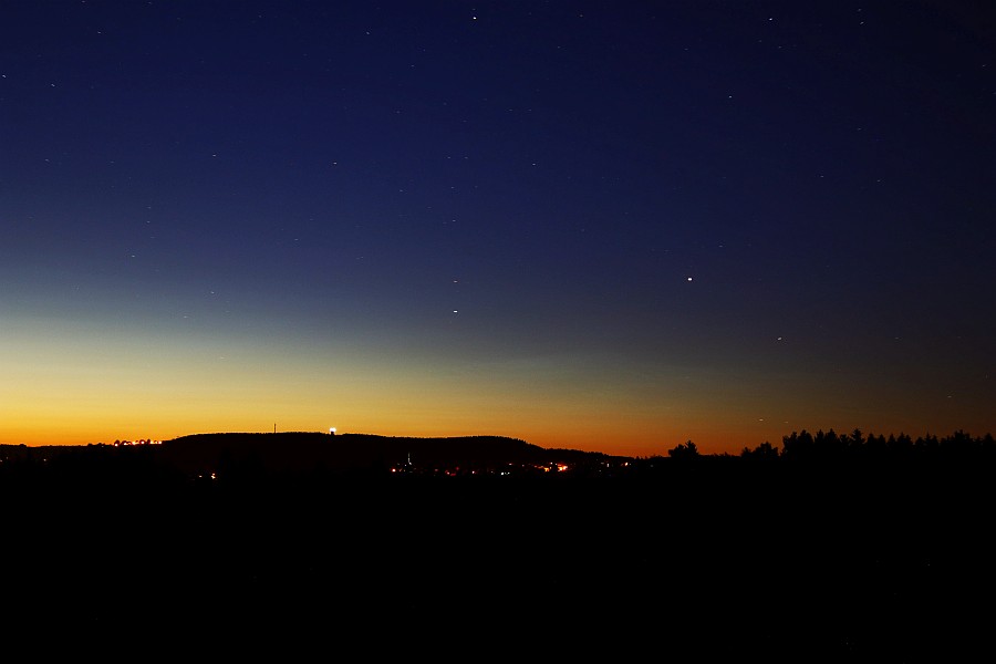 Da der große Wagen auch heute wieder sehr schön zu sehen war, konnte ich mir nicht verkneifen, ihn zusammen mit den leuchtenden Nachtwolken zu fotografieren.