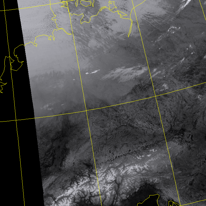 Abb. 2: Satellitenbild (Infrarot) von NOAA 20 vom 27.06.2019, 02.13 MESZ.<br />Image courtesy to Dundee Satellite Receiving Station, Dundee University, Scotland.