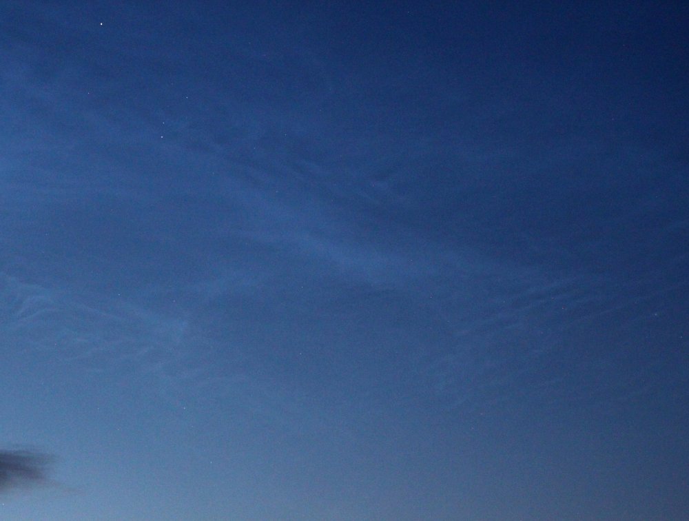 Leider hat sich ausgerechnet ein schmales Wolkenband so blöd vor die NLCs geschoben, dass ich bloß die oberen Ausläufer beobachten konnte (Helligkeit 2).