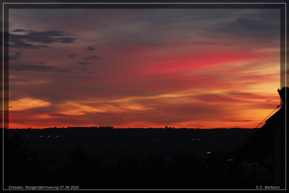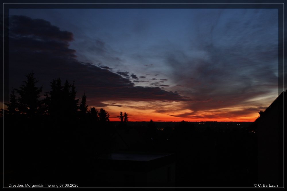 das Morgendisplay war leider nicht so prägnant ausgefallen. Dresden, Helligkeitsklasse 1-2, maximal 10 Grad Höhe, und vielleicht 20-30 Grad Ausdehnung, allerdings wurde die Sicht durch heranziehende Wolken behindert. Aber Immerhin gab es ein Paar schöne Dämmerungsfotos, die man mitnehmen konnte.