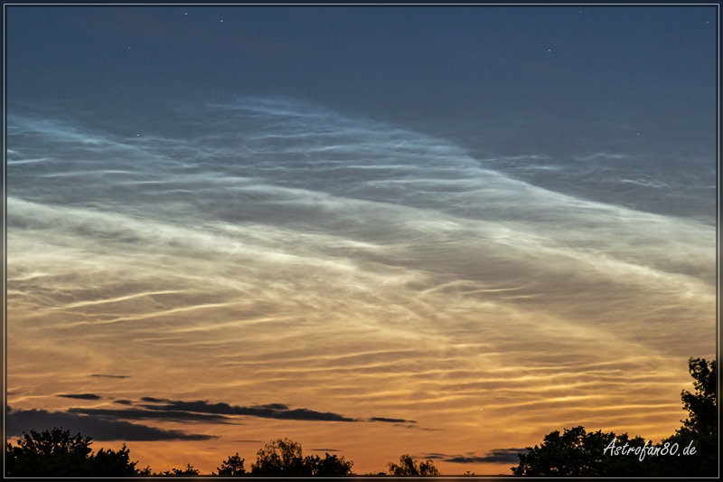 Leider hat sich ausgerechnet ein schmales Wolkenband so blöd vor die NLCs geschoben, dass ich bloß die oberen Ausläufer beobachten konnte (Helligkeit 2).