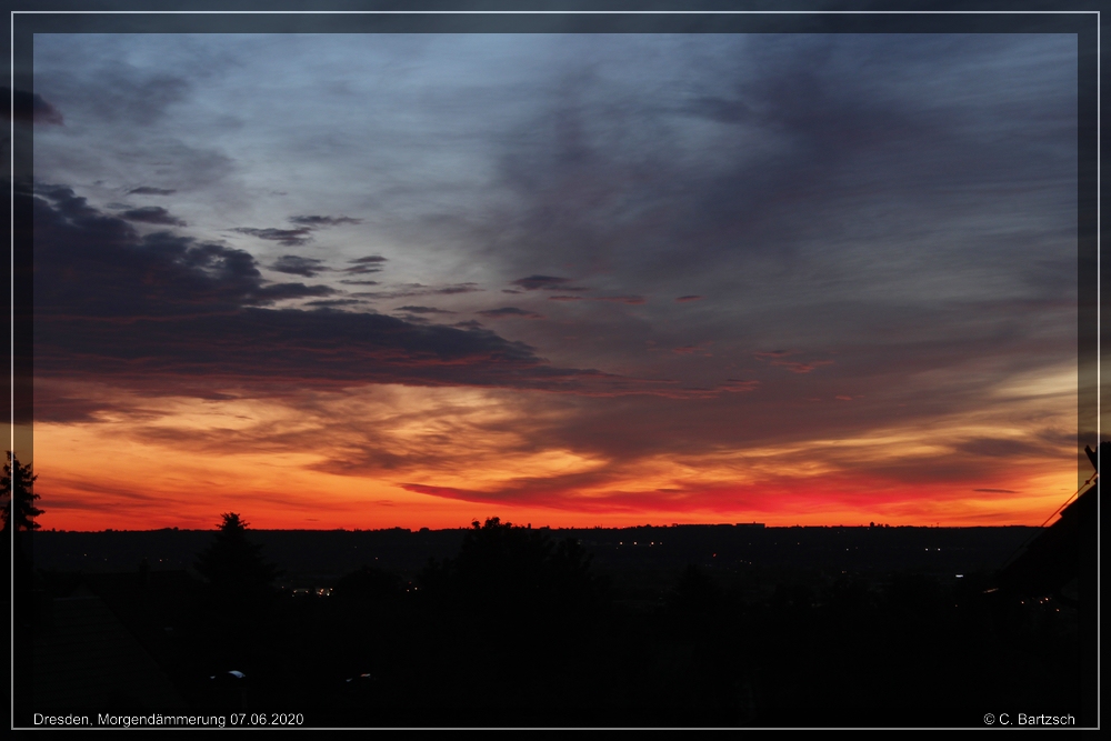 das Morgendisplay war leider nicht so prägnant ausgefallen. Dresden, Helligkeitsklasse 1-2, maximal 10 Grad Höhe, und vielleicht 20-30 Grad Ausdehnung, allerdings wurde die Sicht durch heranziehende Wolken behindert. Aber Immerhin gab es ein Paar schöne Dämmerungsfotos, die man mitnehmen konnte.