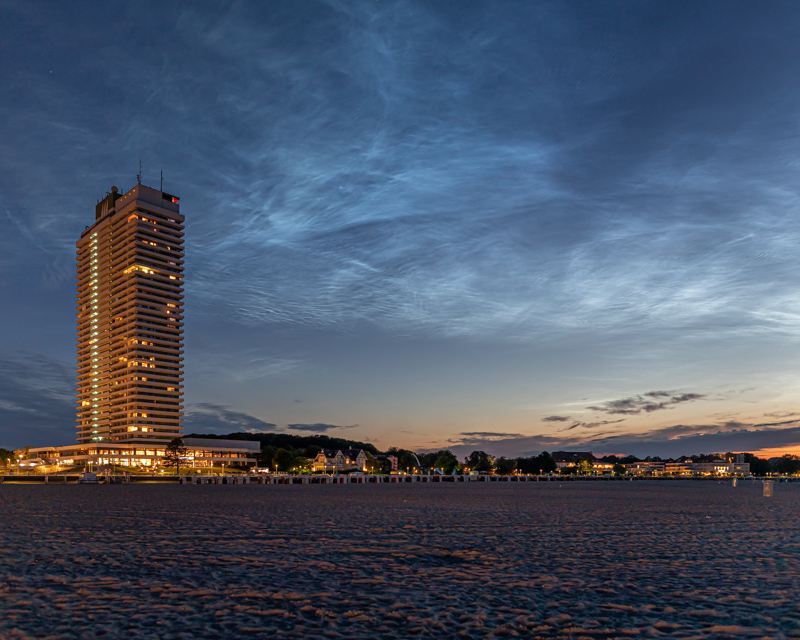 Gegen 23:30 UTC bin ich noch 'mal direkt zum Ostseestrand (Hubertsberg) gefahren. Auch dort wieder beeindruckende Strukturen über dem Horizont, allerdings erreichten die NLC's bei weitem nicht mehr die Höhe....
