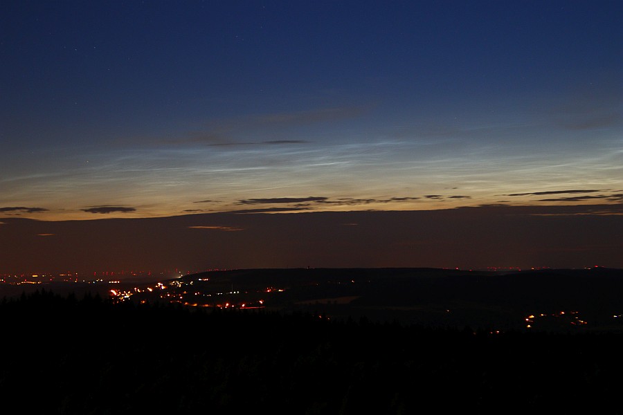 Sind jetzt erst zurück, es war einfach zu schön. Anfangs wollte einfach nix in Gang kommen und die ersten NLC im Norden waren dann auch gerade so sichtbar. Aber dann entstand im NNE knapp über den Wolken ein Feld, was richtig leuchtete und sich zum Ende hin rötlich färbte. Auch, wenn uns das meiste davon verborgen blieb, war es sehr eindrucksvoll. Das hätte ich gern mal von weiter nördlich gesehen.