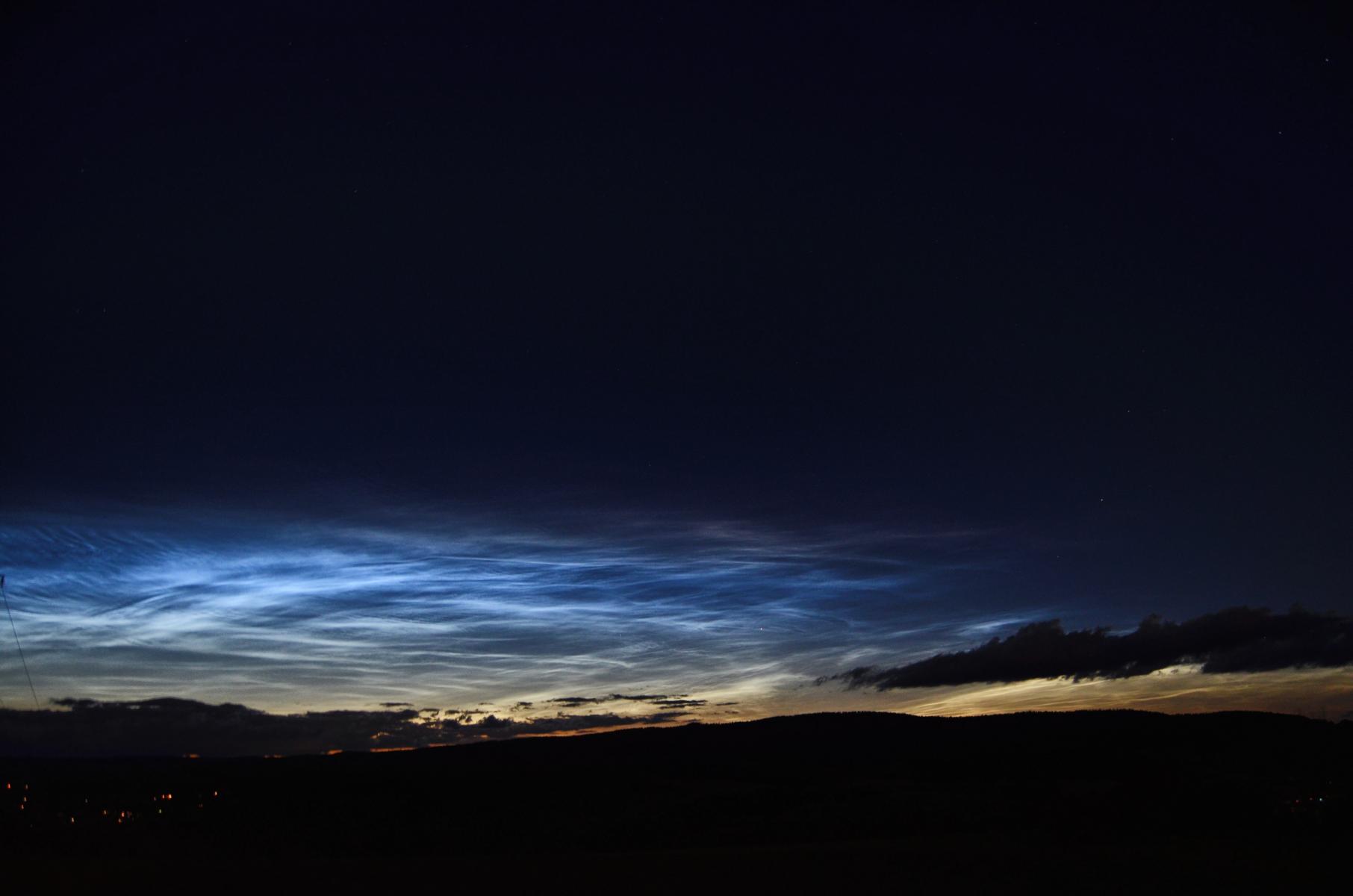 NLCs oberste hier sichtbare Struktur, freihändig vom Dach aus fotografiert, kurz nach 22 Uhr MESZ.