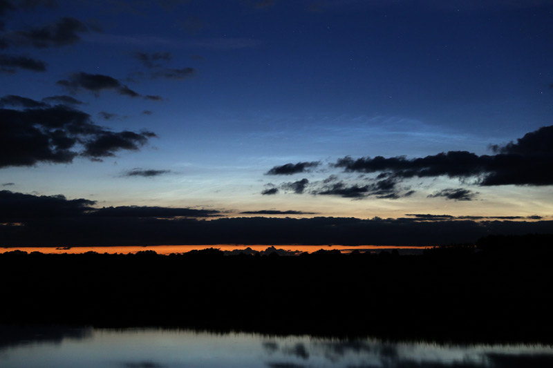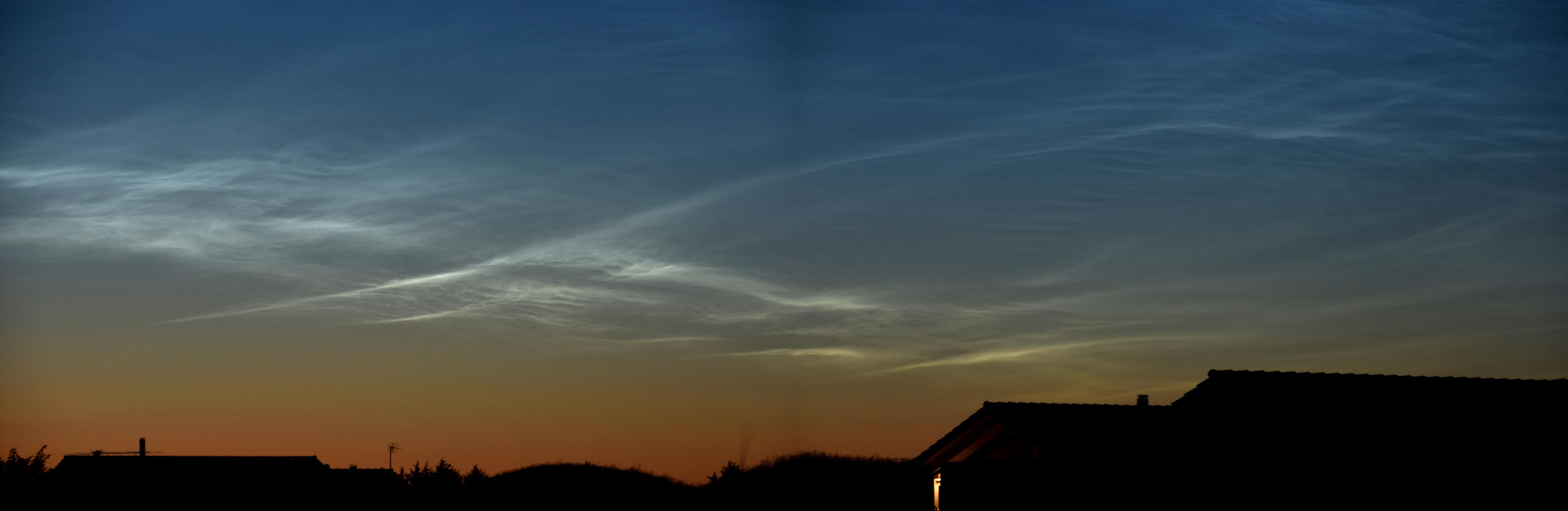die NLCs dieser Nacht waren im Abendsektor offenbar nur im Norden Deutschlands sichtbar, wobei die Grenze nach Süden durch die Wolken des Tiefdruckgebiets gezogen wurden. Da die Kontrolle diverser hochstehender Alpen-Cams negativ ausfiel, dürfte die tatsächliche Sichtbarkeitsgrenze irgendwo nördlich des 49. Breitengrades gelegen haben.