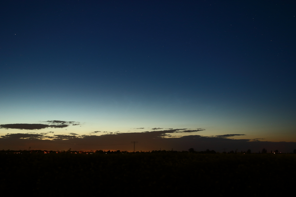 Ohne von Simon seiner Beobachtung zu ahnen, habe ich ein relativ wolkenfreies Zeitfenster im Morgensektor genutzt. Visuell gab es in dieser Zeit nichts zu erfassen, was auch nur ansatzweise an NLCs erinnern könnte. Auch nicht in der Bildentwicklung. Es folgen drei Aufnahmen meines einstündigen Ausflugs.