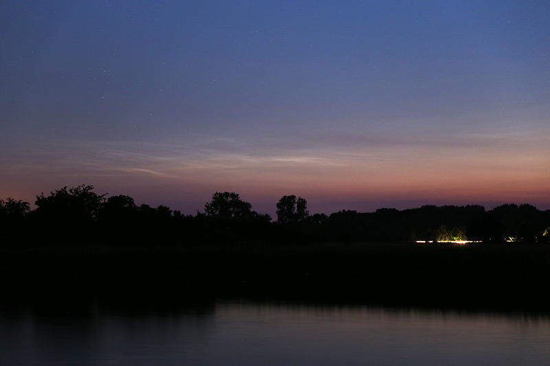 Kurz danach zog sich der Himmel zu. Im Verlaufe der Nacht hätte ich zwar Zeit gehabt, leider waren im Hochnebelfeld nur vereinzelt Sterne zu erkennen und vom Südwesten rollte die Schlechtwetterfront heran. Trotzdem schienen manchmal die NLC hindurch.
