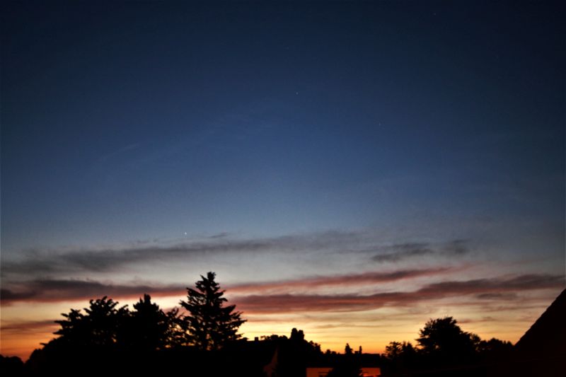 Als ich gestern um 22h15 MESZ trotz stärkerer Bewölkung im Nordwesten Wolken sah, die wie NLC's aussahen, glaubte ich zuerst nicht daran, weil es eigentlich noch zu hell war. Als ich heute aber las, dass in Paris NLC's bis in 50° Höhe gesichtet wurden, bin ich mir da nicht mehr so sicher. Haben andere Beobachter auch solche Wolken gesichtet?