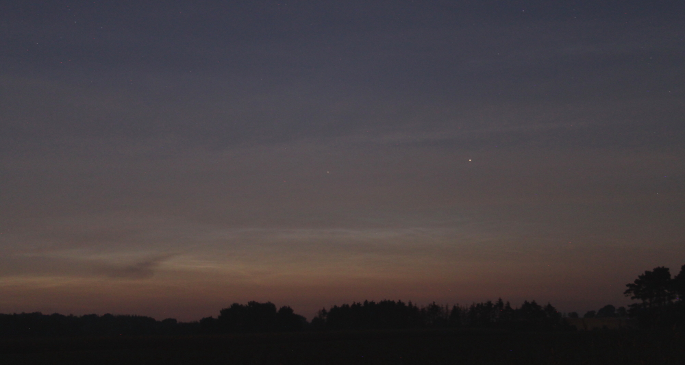 Meine bisher 8. erfolgreiche NLC Beobachtung dieses Jahr, aber alle kranken an der mangelnden Helligkeit der Displays, selbst das große Display gestern lag von der Helligkeit und Struktur weit hinter ähnlich großen Displays der letzten Jahre zurück. Richtig tolle Fotos sind mir bisher noch nicht geglückt.