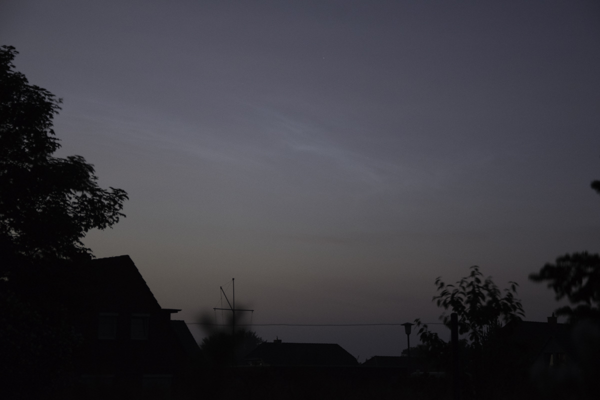Visuell waren die NLCs aber erkennbar. Das Bild entstand um 00:27 MESZ, kurze Zeit später zog es von Westen her komplett zu.