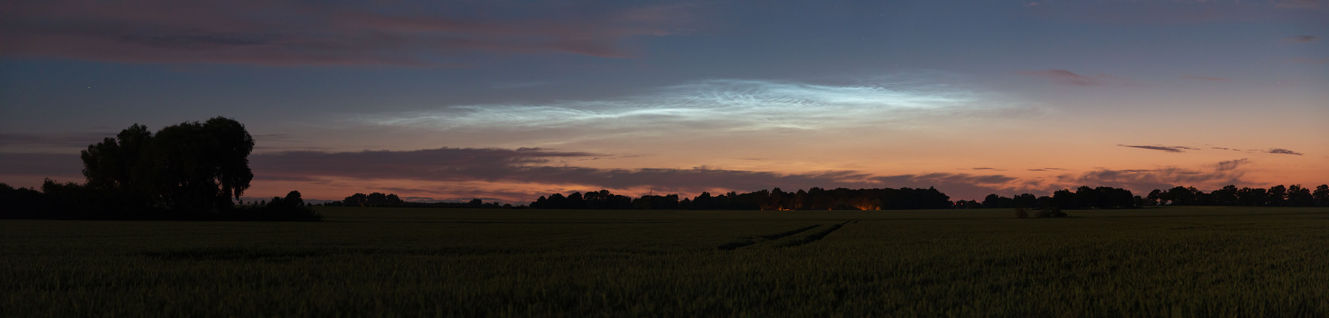 Am Höltigbaum entstand um 23:25 MESZ das folgende Panorama (58mm). Gleich darauf verschwanden die NLC hinter der von Norden hereinziehenden Wolkendecke...