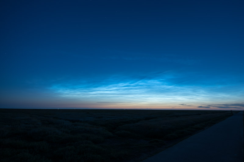 Danke für die vielen schönen Fotos! Das war ja wirklich ein wunderschönes NLC-Ereignis in der letzten Nacht. Knapp östlich von Hamburg war das leider ein wenig durch ein dichtes Zirrusfeld beeinträchtigt. Deswegen wich ich für die zweite Hälfte in die Nähe von Lübeck aus, und das hat sich richtig gelohnt!