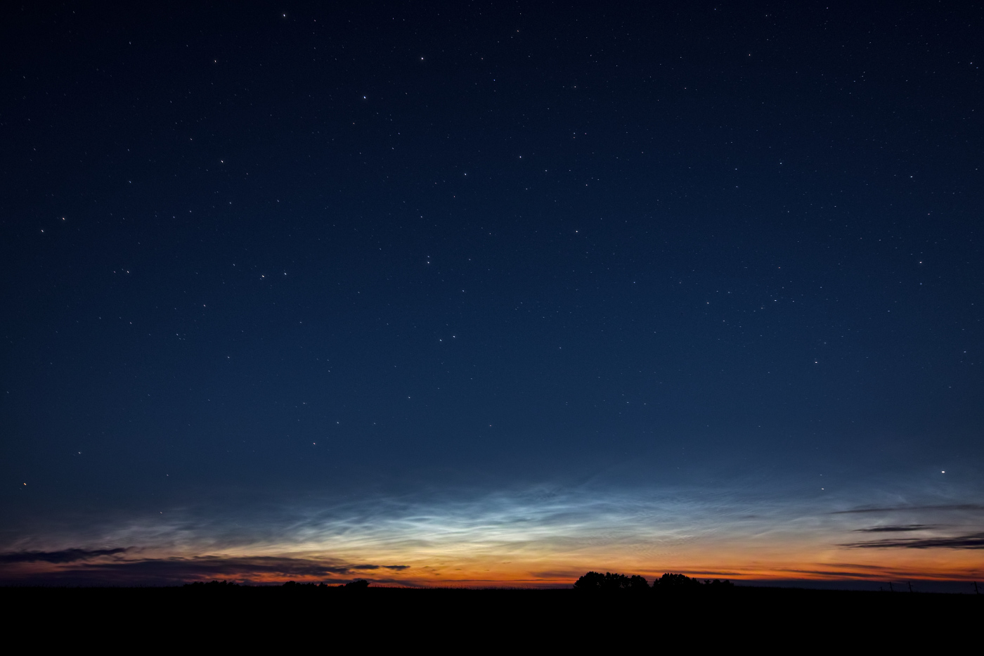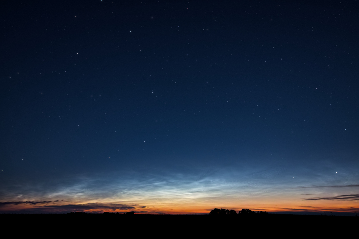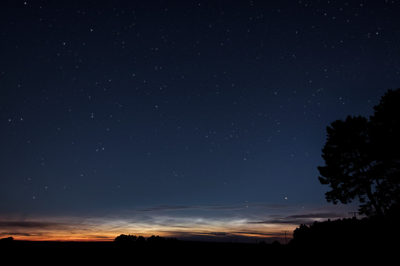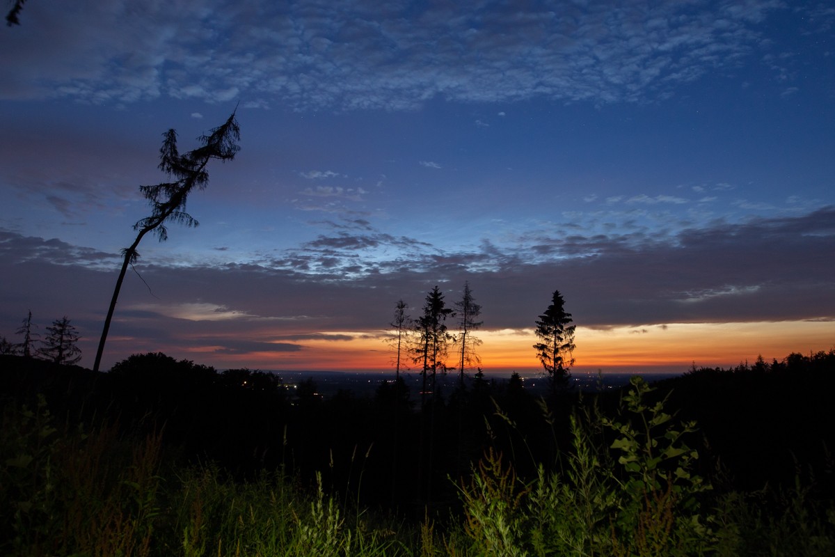 Während der Abenddämmerung habe ich mich auf den Weg in den Wald gemacht, um das jährliche Glühwürmchentreiben zu beobachten und zu fotografieren. Mal ganz davon abgesehen, dass es nach rund 40 Minuten Wanderung Anblicke gab, die zu begeistern wussten, habe ich parallel von euren NLC-Meldungen gehört. Erstmal hatte ich jedoch keine Möglichkeit, mich mit diesen zu beschäftigen: Zu viel Vegetation und zu viele Wolken. Dennoch hier schon einmal die Daten: